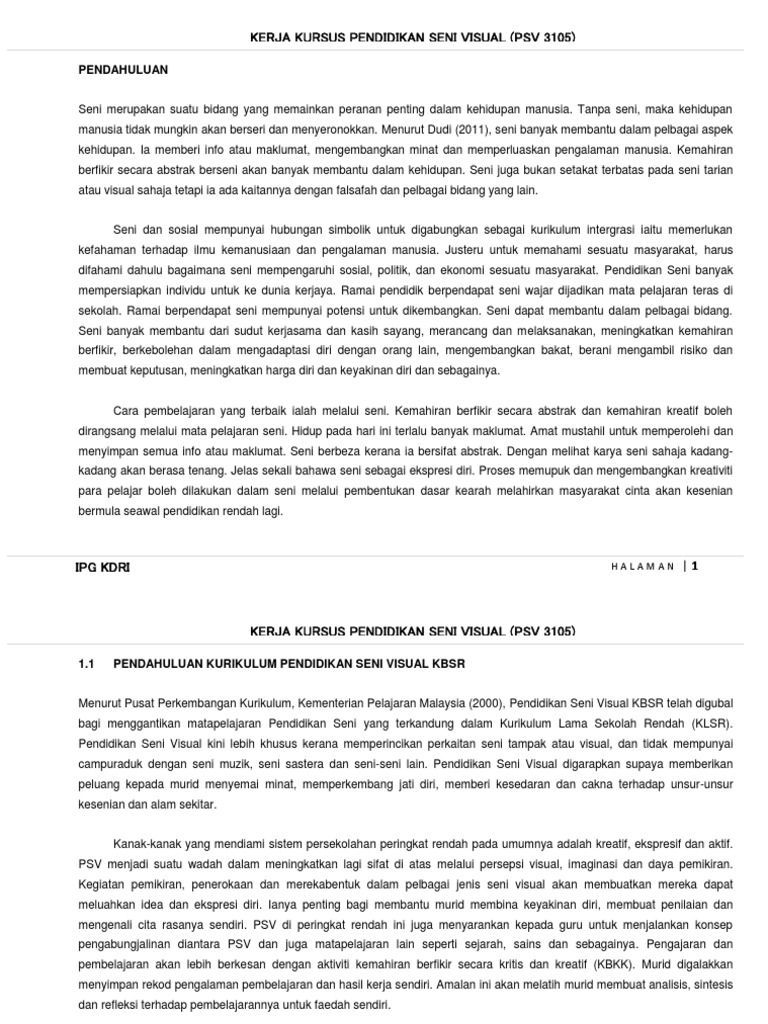 Kerja Kursus Pendidikan Seni Visual Psv 3105 Pdf