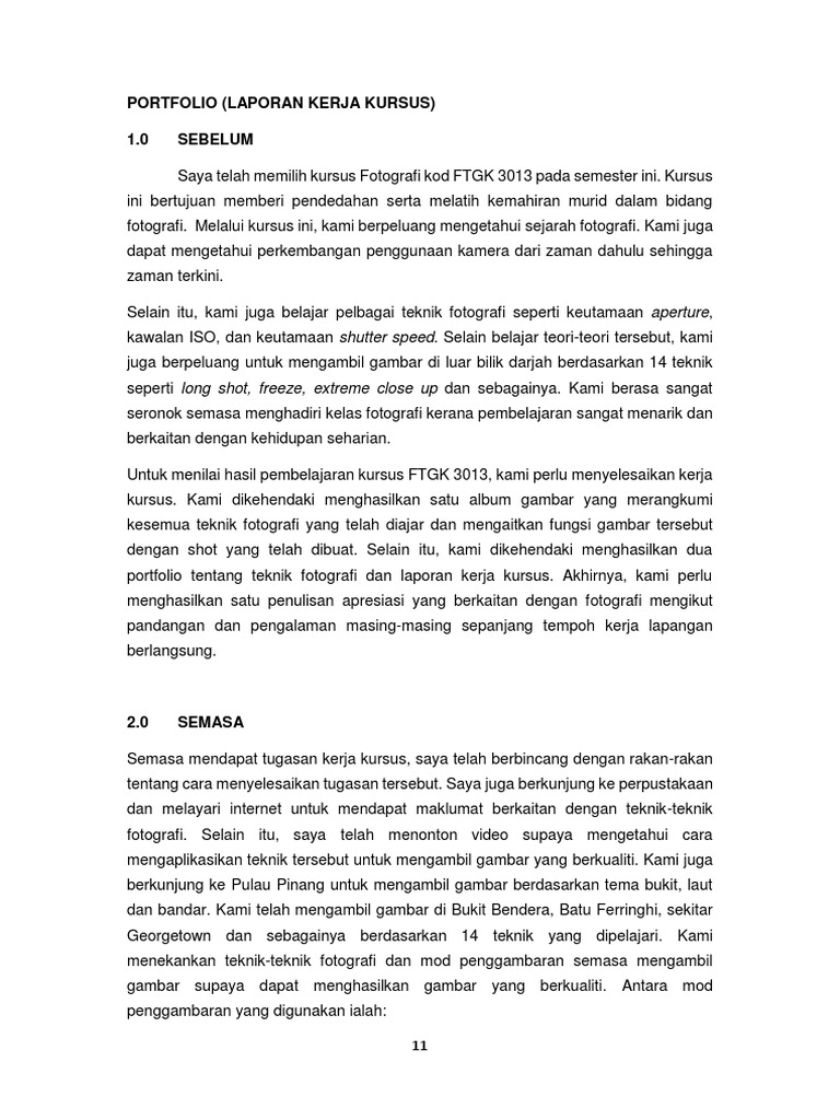 Portfolio Laporan Kerja Kursus 1 0 Sebelum Pdf